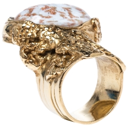 Saint Laurent Paris Shadow Crown Gold Ring Size 50