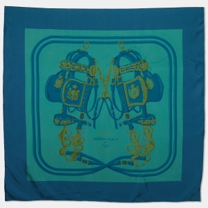 Celine Navy Blue Multicolor Printed Silk Scarf