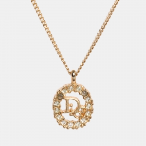 Dior Gold Tone Rhinestone Logo Pendant Necklace