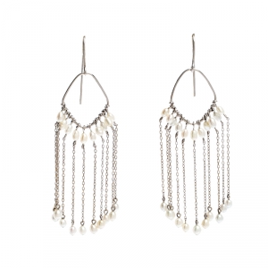 Gucci Pearl Bead 18k White Gold Hook Tassel Dangle Earrings