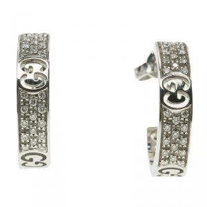 Gucci Icon 18 K White Gold Diamond Small Hoops Earrings