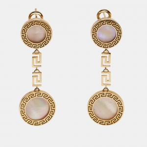 Versace Greca Mother of Pearl 18k Yellow Gold Earrings