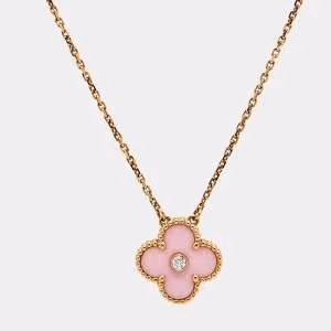 Van Cleef & Arpels Vintage Alhambra Diamond Porcelain Limited Edition Rose Gold Necklace