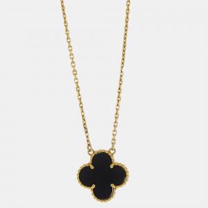 Van Cleef & Arpels Magic Alhambra 1 Motif Onyx 18K Yellow Gold Long Pendant Necklace