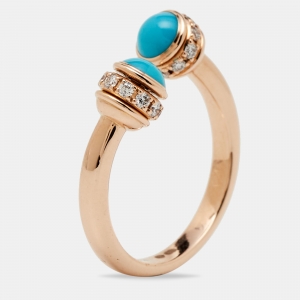 Piaget Possession Turquoise Diamond 18k Rose Gold Ring Size 51