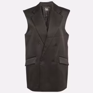 Karl Lagerfeld Black Satin Pleats Detail Tailored Gilet M