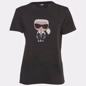 Karl Lagerfeld Black Ikonik Rhinestone Embellished Cotton T-Shirt L