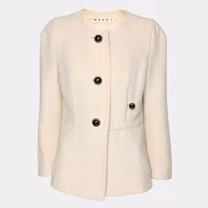 Marni White Cotton & Linen Contrast Button Detail Jacket M