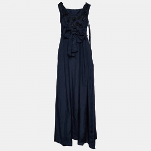 Marni Navy Black Printed Crepe Button Front Maxi Dress M