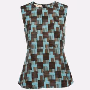 Marni Royal Blue Houndstooth Jacquard Peplum Top M