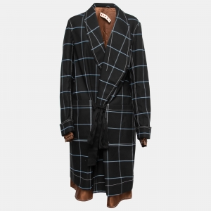 Marni Black Windowpane Check Tie-Front Coat S