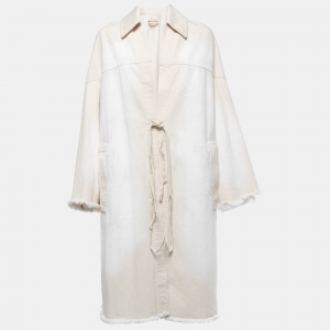 Marni Beige Denim Painted Detail Tie Detail Coat S