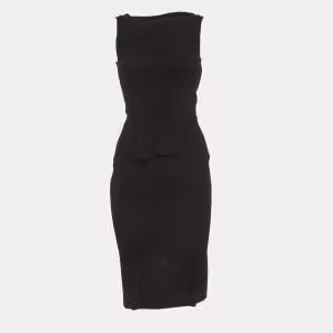 Roland Mouret Black Crepe Lace Inset Vasall Long Dress S