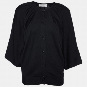 Yves Saint Laurent Black Wool Keyhole Neck Long Sleeve Sweater M