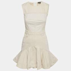 Alexander McQueen Cream Leaf Jacquard Asymmetric Hem Shirt Dress S