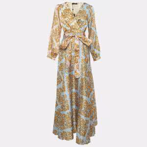 Gianfranco Ferre Blue/Yellow Printed Maxi Crepe Wrap Dress S