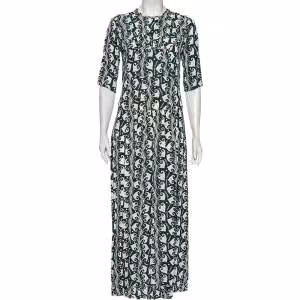 Marni Green Printed Crepe Pleated Front Detailed Maxi Dress S