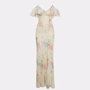 Polo Ralph Lauren White Floral Print Silk Ruffled Maxi Dress S