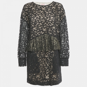 See by Chloe Black Lace and Cotton Long Sleeve Short Dress S