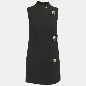 Versus Versace Black Crepe Logo Metal Detail Mini Dress S