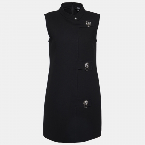 Versus Versace Black Embossed Button Detail Double Breasted Sleeveless Vest Dress M