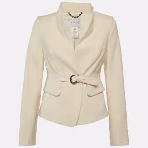Celine Off-White Silk Braid Trim Detail Open Front Jacket M