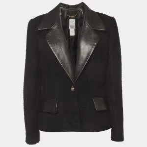 Celine Black Crepe Wool Ruched Zip Front Jacket L