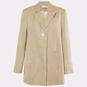 Ganni Neutral Linen Button Front Oversized Jacket L