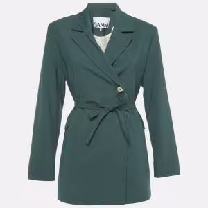 Ganni Green Crepe Double Breasted Belted Blazer S