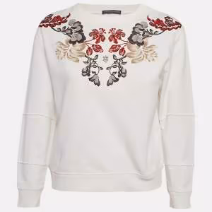 Alexander McQueen Grey Fleece Lined Cotton Poppy Sequined Sweatshirt S