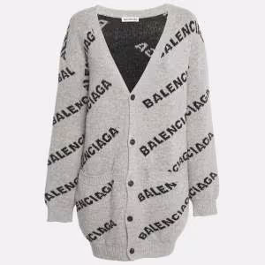 Balenciaga Grey Logo Intarsia Wool Knit Sweater S