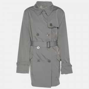 Basler Grey Nylon Belted Double Breasted Trench Coat XL