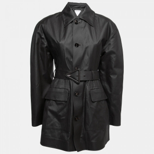 Bottega Veneta Black Coated Cotton Button Front Belted Coat XS