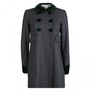 Paul and Joe Grey Contrast Velvet Trim Double Breasted Long Coat S