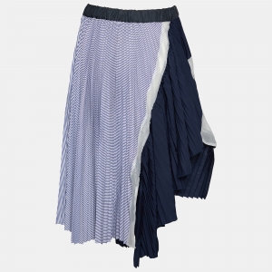 Sacai Blue Plisse Cotton Asymmetric Skirt S