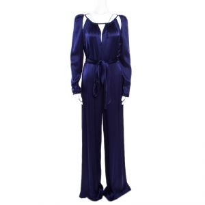 Temperley London Purple Satin Cutout Detail Belted Stockdale Jumpsuit M