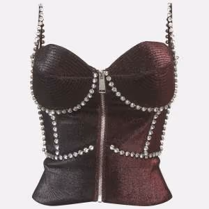 Area Black Crystal Embellished Wool Bustier Crop Top S