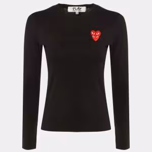 Comme Des Garcons PLAY Black Jersey Embroidered Heart T-Shirt XS