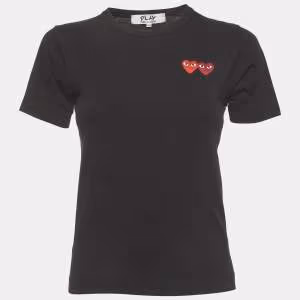 Comme des Garcons Play Black Cotton Play Heart Patched T-Shirt XS