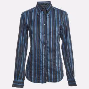 Dolce & Gabbana Blue Striped Cotton Full Sleeve Shirt M