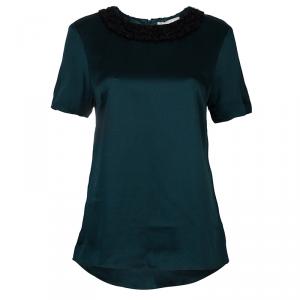 Jason Wu Green Embellished Neck Detail Short Sleeve Blouse M
