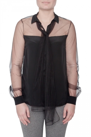 Jason Wu Black Silk Sheer Tulle Trim Bow Tie Concealed Button Front Shirt S