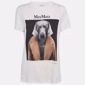 Max Mara White Dog Print Cotton Crew Neck Cipria T-Shirt L