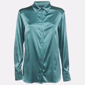 Weekend Max Mara Green Silk Satin Full Sleeve Button Front Shirt L