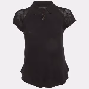 Zadig & Voltaire Charcoal Grey Cotton Knit V-Neck Story Fishnet Top S
