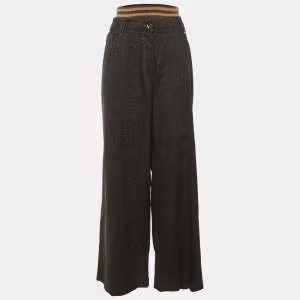 Brunello Cucinelli Brown Velvet Trim Wool Trousers S