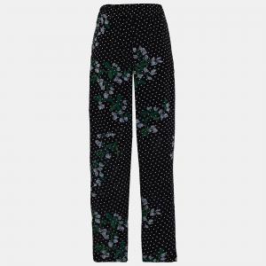 Ganni Black Floral Polka Crepe Tapered Trousers S (EU 36)