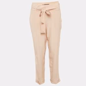Roberto Cavalli Beige Printed Silk Slim Fit Trousers M