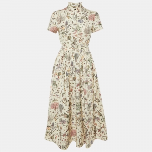 Christian Dior White Toile De Jouy Print Cotton Midi Shirt Dress L