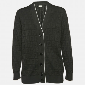 Fendi Black & Brown Zucca Monogram Knit Short Sleeve Pullover S